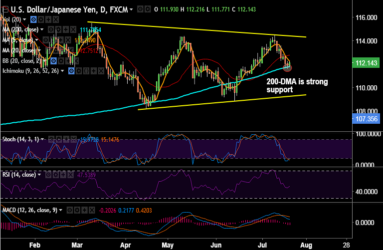 Support levels - 111.78 (200-DMA), 111, 110.95 (June 22 low)