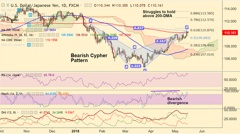 - The major is struggling to hold gains above 200-DMA, retrace below will see further downside.