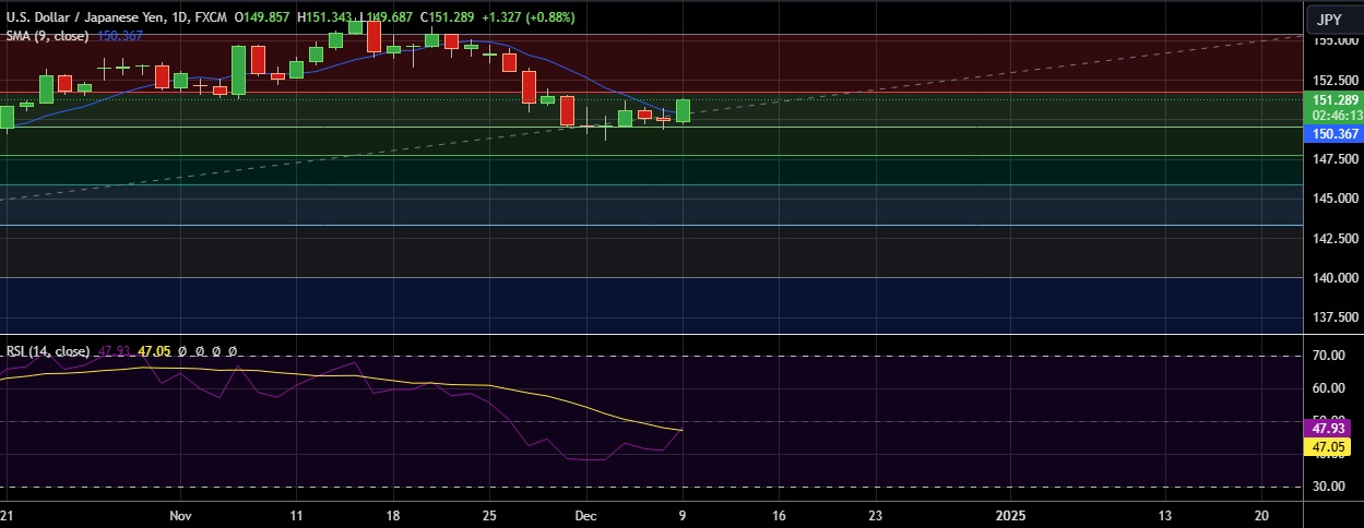 • Immediate resistance is located at 151.71 (23%fib), any close above will push the pair towards 153.19 (Nov 27th high).