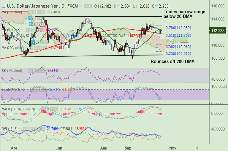 Support levels - 112, 111.76 (200-DMA), 111.50 (Sept 26 low), 111.14 (100-DMA), 111