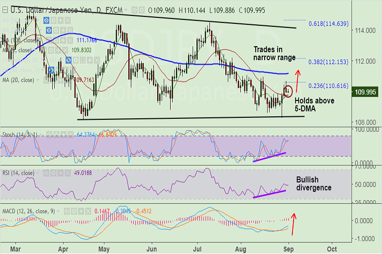 Support levels - 109.83 (5-DMA), 109.71 (20-DMA), 109, 108.80 (June 14 lows)