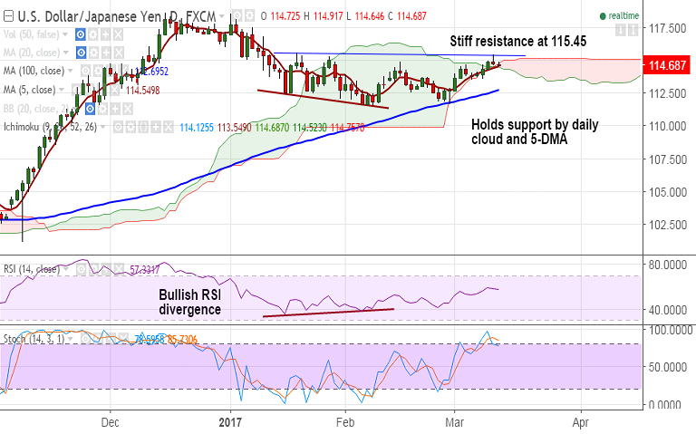 Support levels - 114.54 (5-DMA, 1H 100-SMA & cloud base), 113.96 (50-DMA), 113.55 (Mar 6 low)