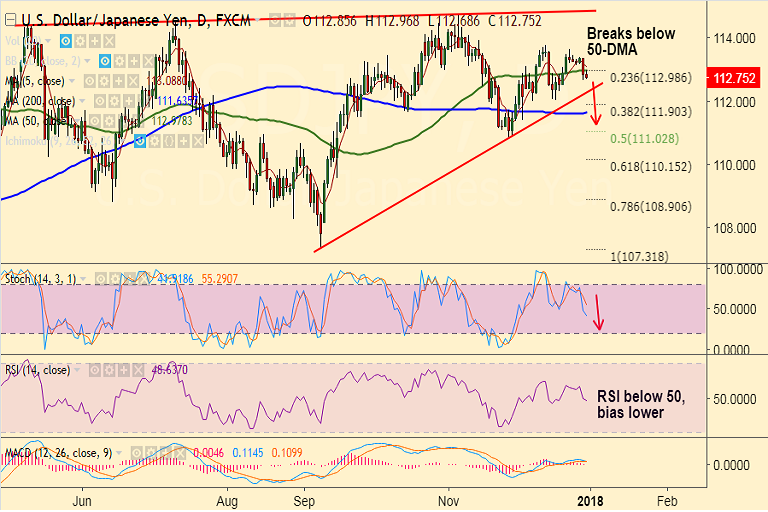 - The pair has hit fresh 2-week lows at 112.37, bears now target 100-DMA at 112.00.