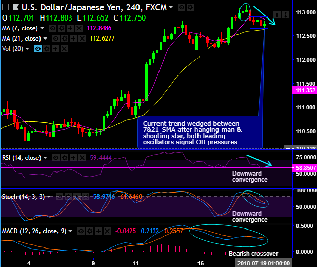 - USDJPY has formed hanging man and shooting star at 113.004 and 113.031 levels respectively amid today's rallies trade as markets nudge trade wars tormentor.