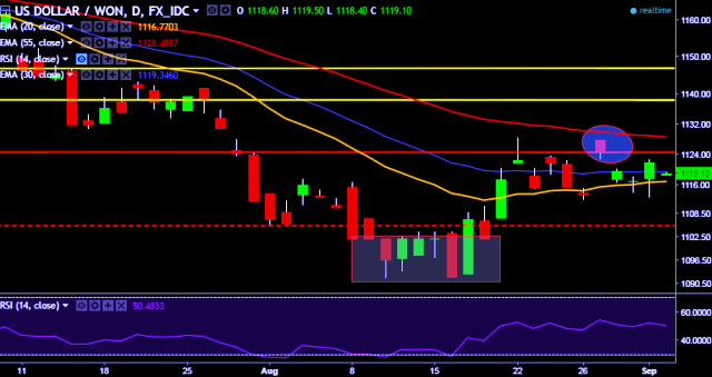 - It made intraday high at 1,119.30 and low at 1,118.40 marks.