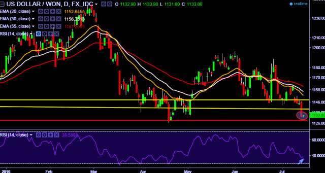 - USD/KRW is currently trading around 1133 levels.