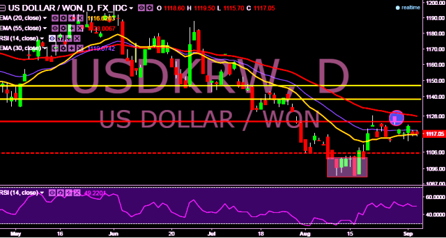 - USD/KRW is currently trading around 1,117 levels.