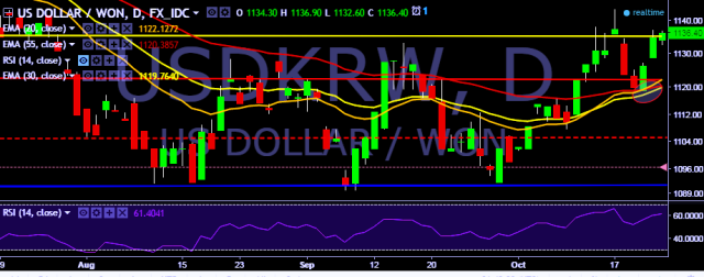 We prefer to go long on USD/KRW only above 1,137, stop loss 1,122 and target 1,152/1,168.