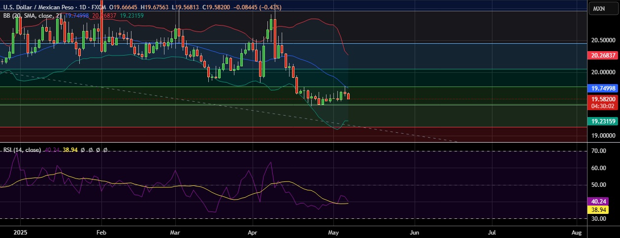 • USD/MXN dipped on Wednesday as uncertainty over U.S.-China trade negotiations weighed on sentiment.