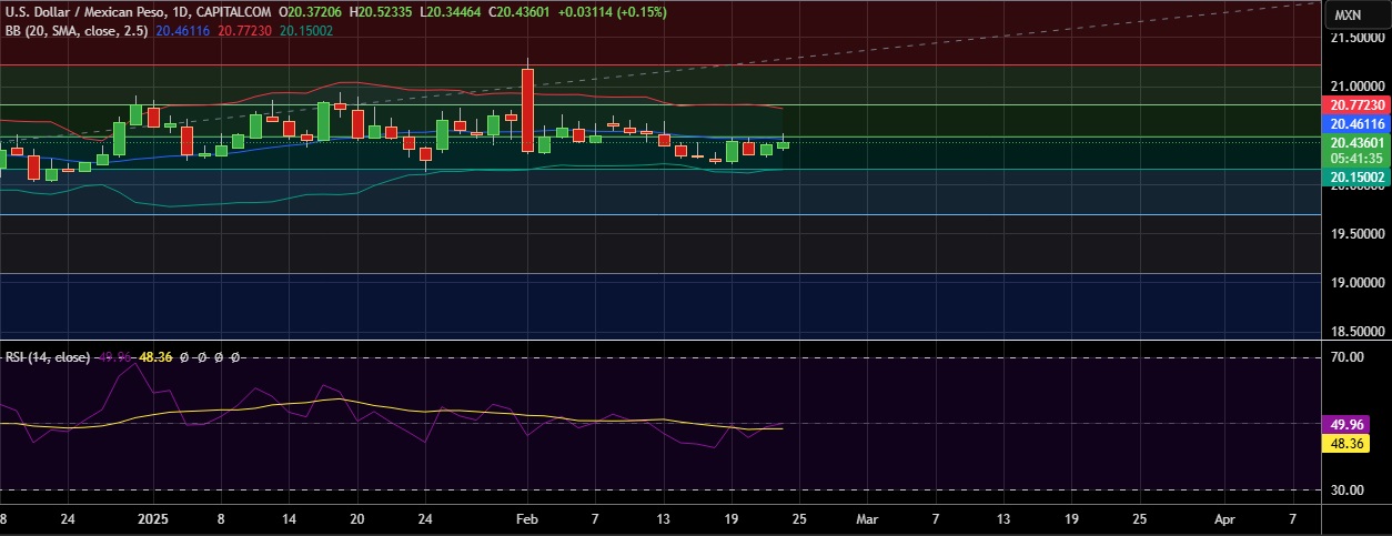 • USD/MXN strengthened on Monday as peso weakened after Mexico’s annual inflation accelerated roughly in line with economists’ forecasts in early February remaining close to the Banxico target.