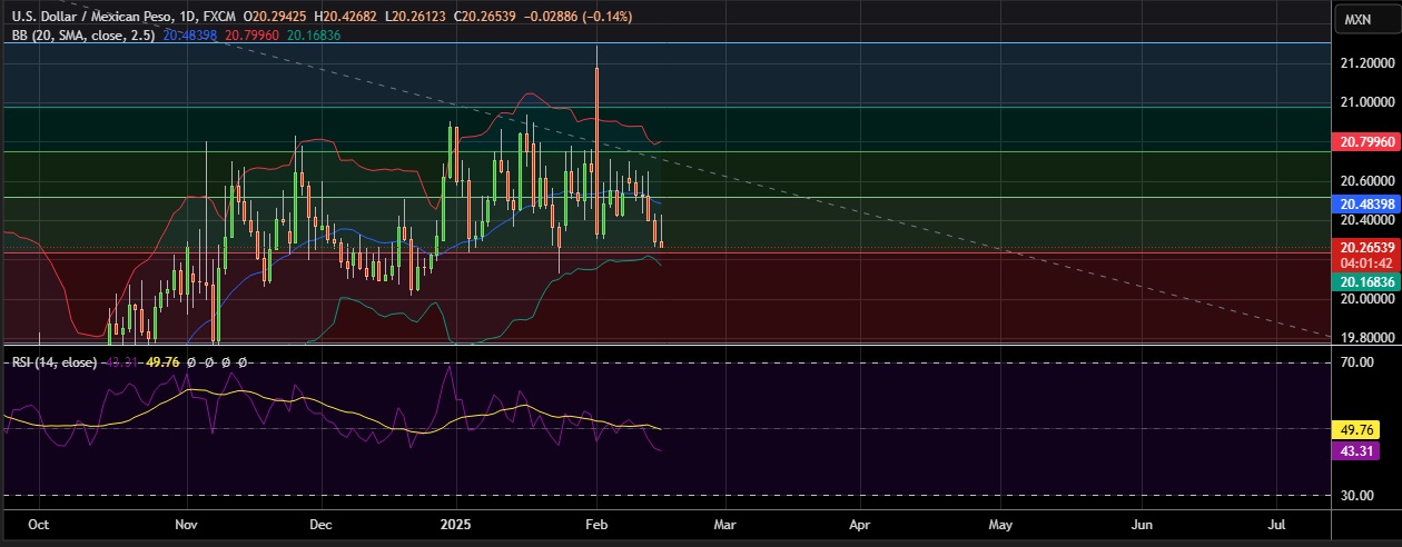 • USD/MXN fell on Monday as investors gauged the path of U.S. interest rates and how long a temporary reprieve from U.S. President Donald Trump's tariffs could last..