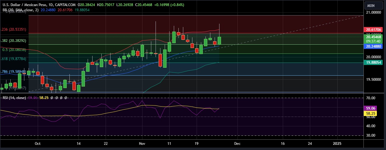 • USD/ MXN rose sharply on Tuesday as the dollar's rallied after U.S. President-elect Donald Trump pledged tariffs on all imports from Canada and Mexico.