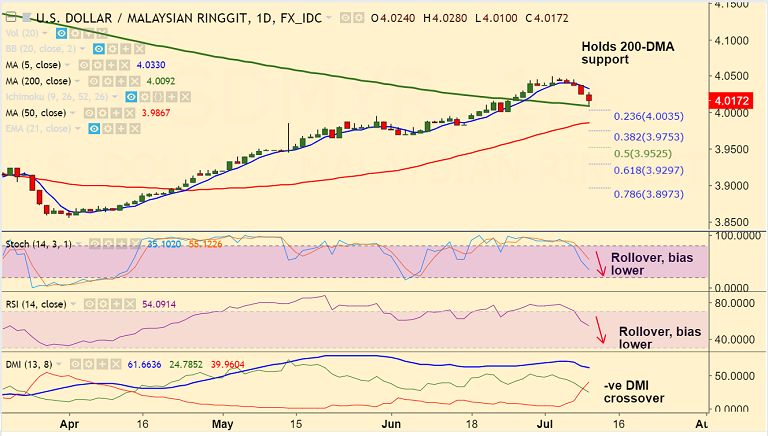Recommendation: Good to go short on break below 200-DMA, SL: 4.0330, TP: 4.0035/ 3.9870/ 3.9420
