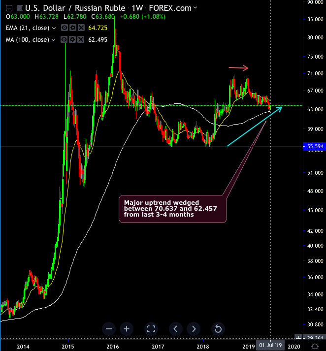 This is our view does not leave a strong buffer to deal with such potential capital outflow bouts. Accordingly, we hold Aug-19 USDRUB 63/68 1x1 call spreads (at spot reference: 63.611 levels). Courtesy: JPM & Commerzbank