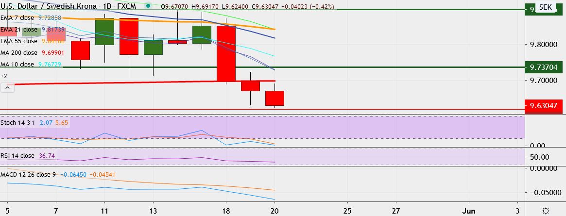 FxWirePro: USD/SEK plunges over 2-month low, likely to break below 9.6000