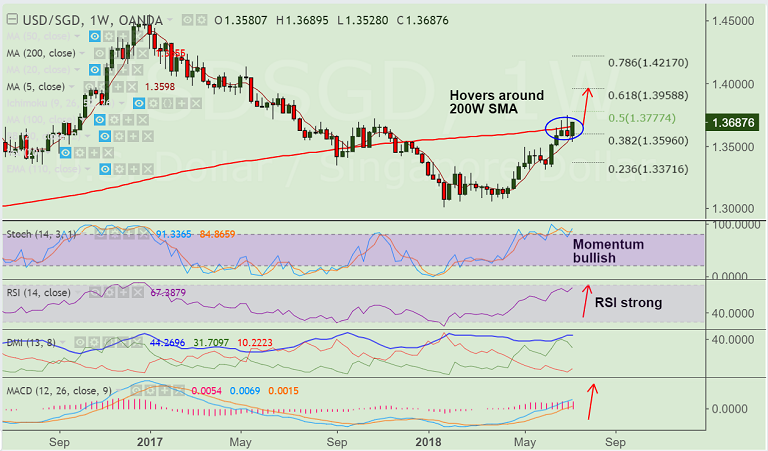 - Singapore dollar is extending weakness against its US counterpart, is trading at 1.3688 at the time of writing, up 0.41 percent on the day.