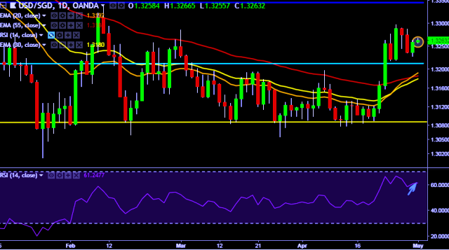 We prefer to take long position on USD/SGD around 1.3258, stop loss 1.3218 and target of 1.3296/1.3340.