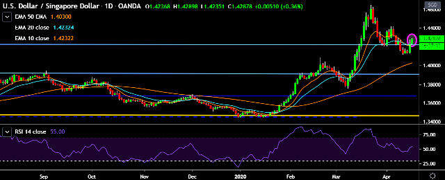 - USD/SGD is currently trading around 1.43 marks.