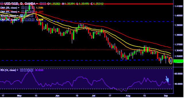 We prefer to take short position in USD/SGD around 1.3535, stop loss 1.3572 and target of 1.3498.