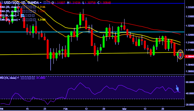 We prefer to take short position on USD/SGD around 1.3080, stop loss at 1.3132 and target of 1.3005.