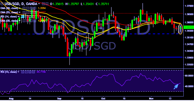 We prefer to take short position on USD/SGD only below 1.3532, stop loss at 1.3602 and target of 1.3460.
