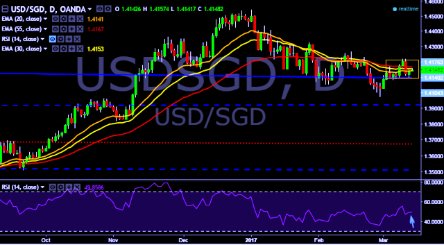 We prefer to take long position in USD/SGD around 1.4150, stop loss 1.4090 and target of 1.4219/1.4266.