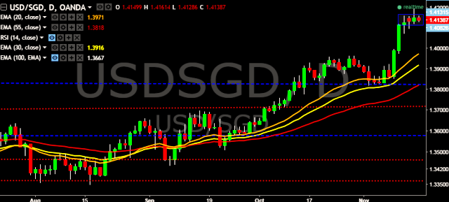 We prefer to go long on USD/SGD only above 1.4162 with stop loss at 1.4096 and target of 1.4228/1.4336.