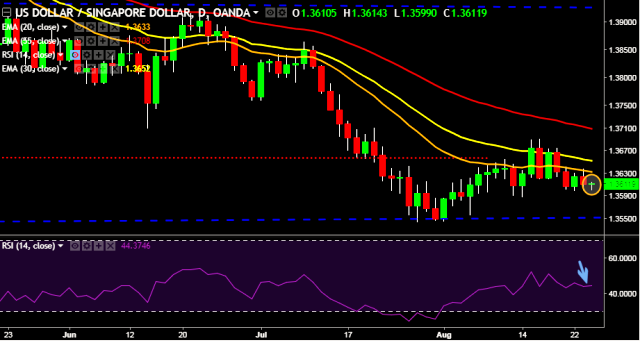 We prefer to take short position in USD/SGD only below 1.3597, stop loss 1.3652 and target of 1.3545.