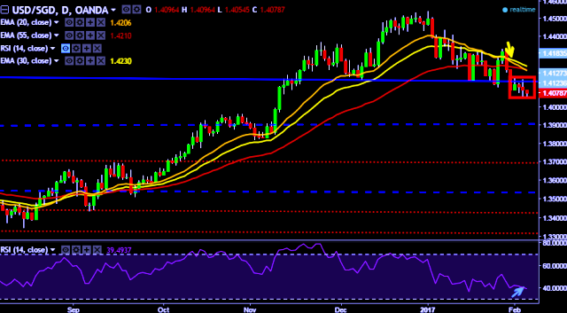 We prefer to take short position in USD/SGD around 1.4080, stop loss at 1.4168 and target of 1.3972.