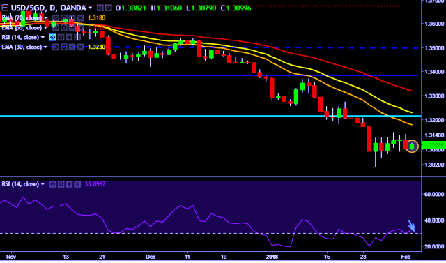 We prefer to take short position in USD/SGD only below 1.3075, stop loss 1.3150 and target of 1.3005.