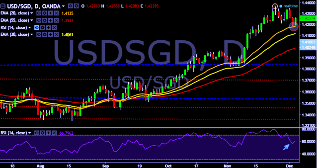- USD/SGD is currently trading around 1.4256 marks.