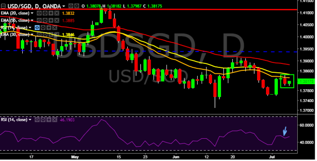 We prefer to take short position in USD/SGD only below 1.3798, stop loss at 1.3840 and target of 1.3757.