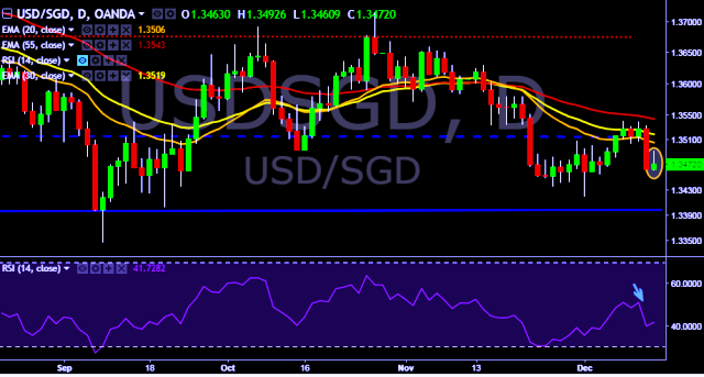 We prefer to take short position in USD/SGD around 1.3485, stop loss 1.3532 and target of 1.3396.