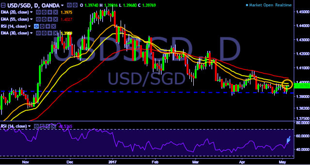 We prefer to take long position in USD/SGD only above 1.3992, stop loss 1.3919 and target of 1.4077.