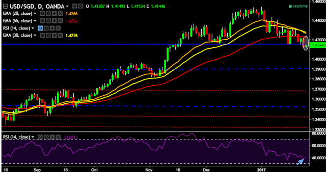 We prefer to take short position in USD/SGD around 1.4150, stop loss 1.4217 and target of 1.4112/1.4046.