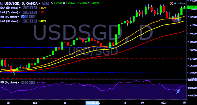 We prefer to go long on USD/SGD around 1.4315, stop loss at 1.4264 and target of 1.4443.