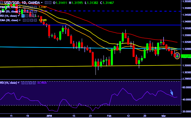 We prefer to take short position on USD/SGD around 1.3145, stop loss at 1.3190 and target of 1.3090/1.3005.