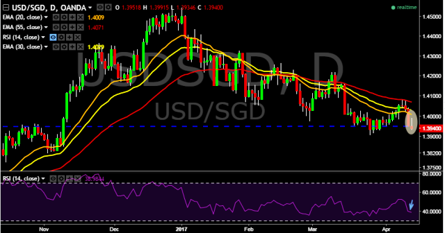 We prefer to take short position in USD/SGD around 1.3950, stop loss 1.4001 and target of 1.3908/1.3851.