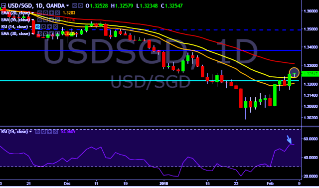 We prefer to take long position in USD/SGD around 1.3260, stop loss 1.3220 and target of 1.3353.