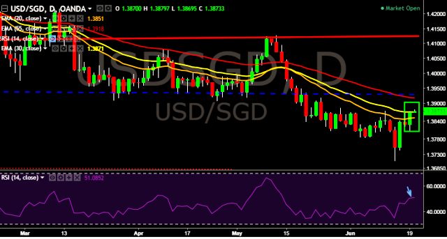 - USD/SGD is currently trading around 1.3873 marks.