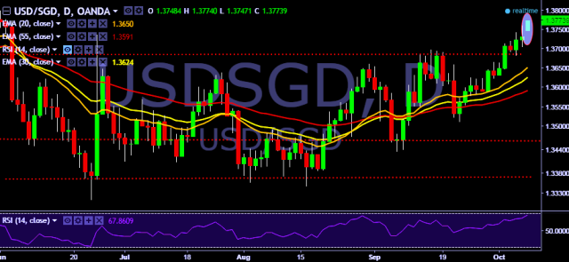 We prefer to go short on USD/SGD around 1.3760 with stop loss at 1.3704 and target of 1.3799/1.3842.