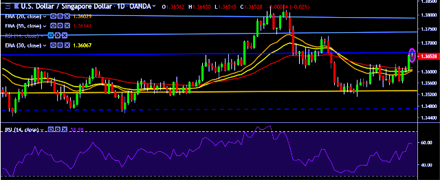 - USD/SGD is currently trading around 1.3653 marks.