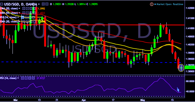 We prefer to take short position in USD/SGD around 1.3912, stop loss 1.3959 and target of 1.3851/1.3790.