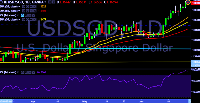 - USD/SGD is currently trading around 1.3670 marks.
