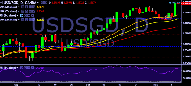 We prefer to go long on USD/SGD only above 1.3999 with stop loss at 1.3851 and target of 1.4068/1.4132.