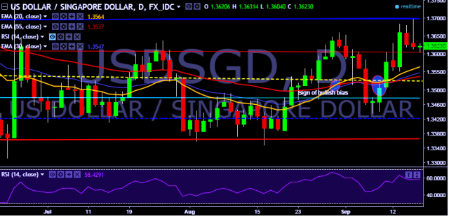 We prefer to go long on USD/SGD only above 1.3632 with stop loss at 1.3605 and target of 1.3698/1.3799.