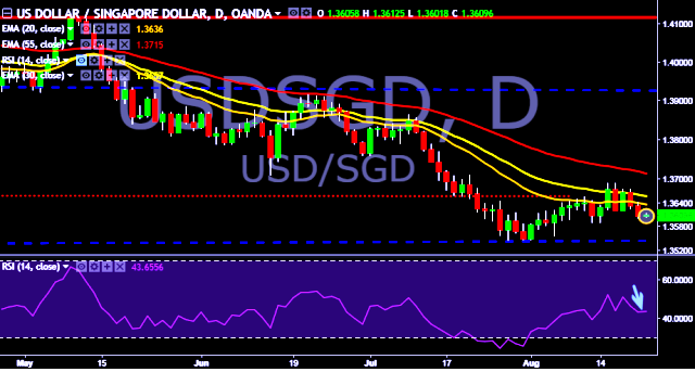We prefer to take short position in USD/SGD only below 1.3600, stop loss 1.3675 and target of 1.3545.