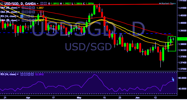 We prefer to take long position in USD/SGD around 1.3890, stop loss 1.3851 and target of 1.3949/1.3978.