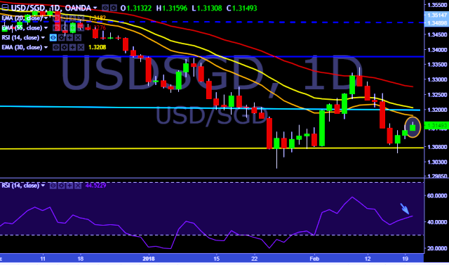 We prefer to take long position on USD/SGD around 1.3140, stop loss at 1.3090 and target of 1.3255.