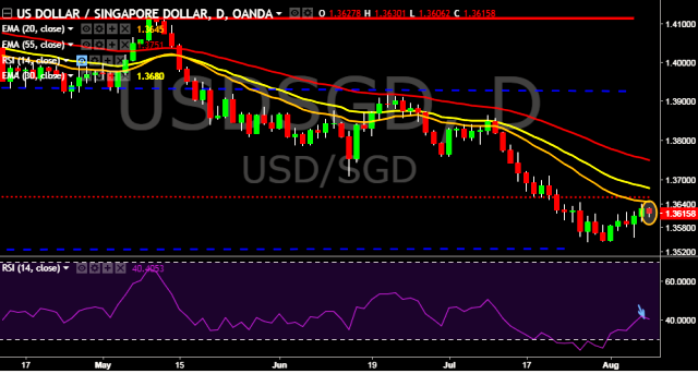We prefer to take long position in USD/SGD only above 1.3630, stop loss at 1.3593 and target of 1.3676.